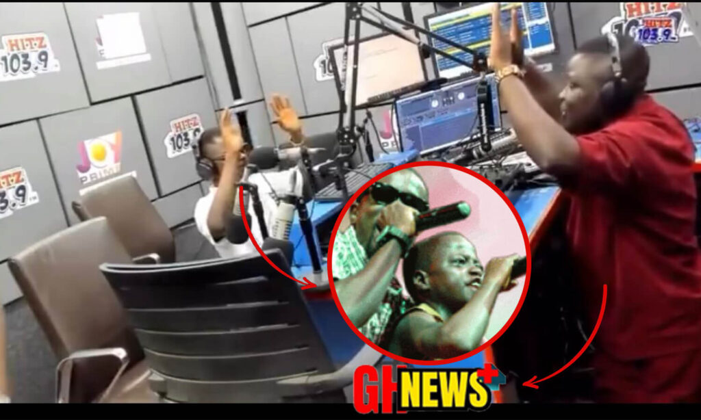 A heartfelt moment captured as Awal and Dr. Pounds knelt in remorse, pleading with Sarkodie for forgiveness on behalf of Awal. The reunion request comes years after their 2010 Talented Kidz stage performance together. Photo credit: Maiden Ghana.